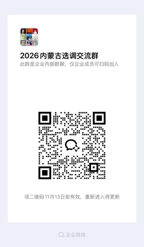 步骤1:扫描本公告的二维码,进入“2026内蒙古选调交流群”。(若该二维码失效,请添加工作人员微信:zhs15000788309,并备注“姓名-院系-内蒙古选调”)