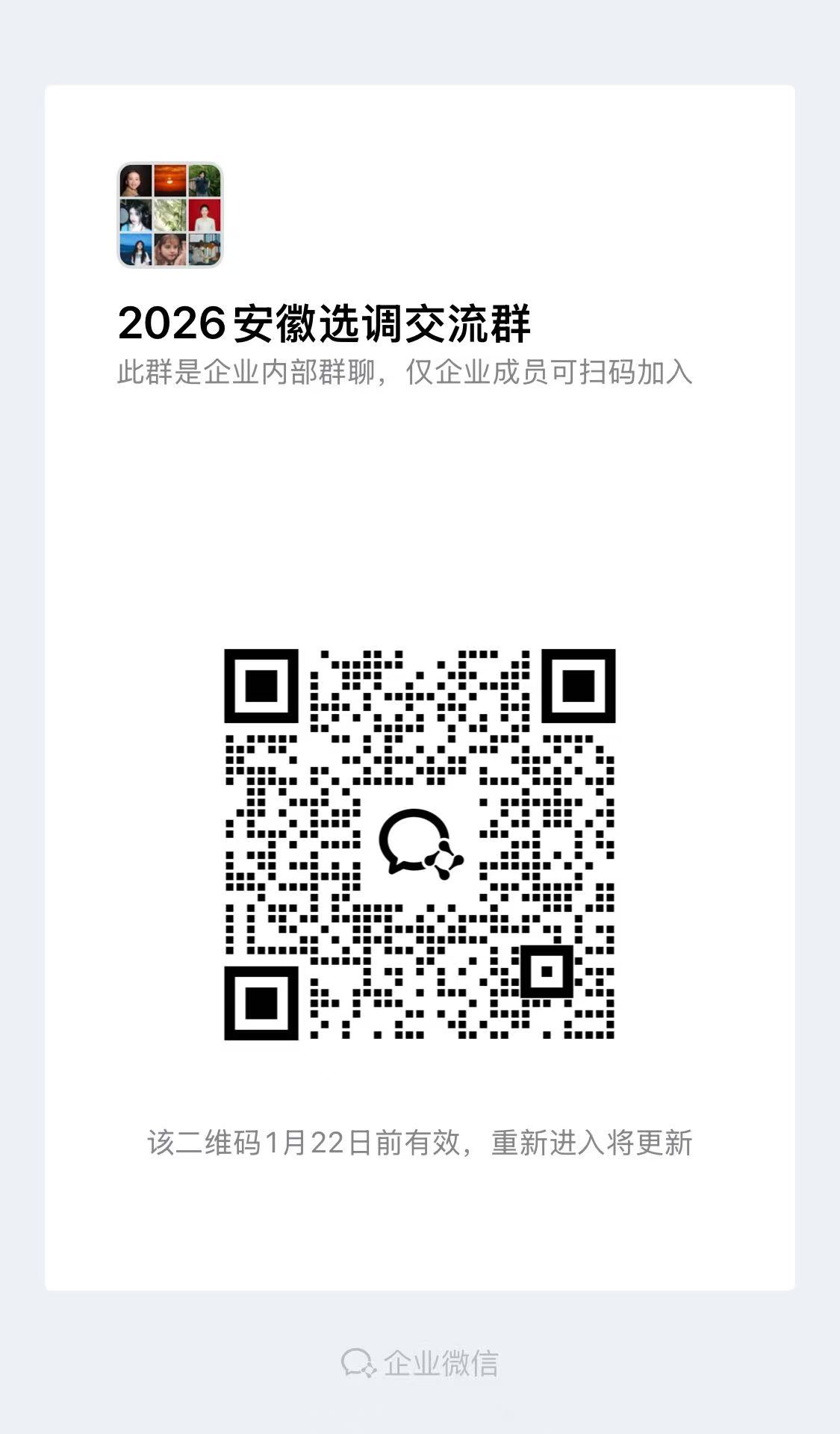 步骤1:扫描本公告的二维码,进入“2026安徽选调交流群”。(如二维码失效,请添加工作人员微信:sxy18721301383,并备注“姓名-院系-安徽选调”)