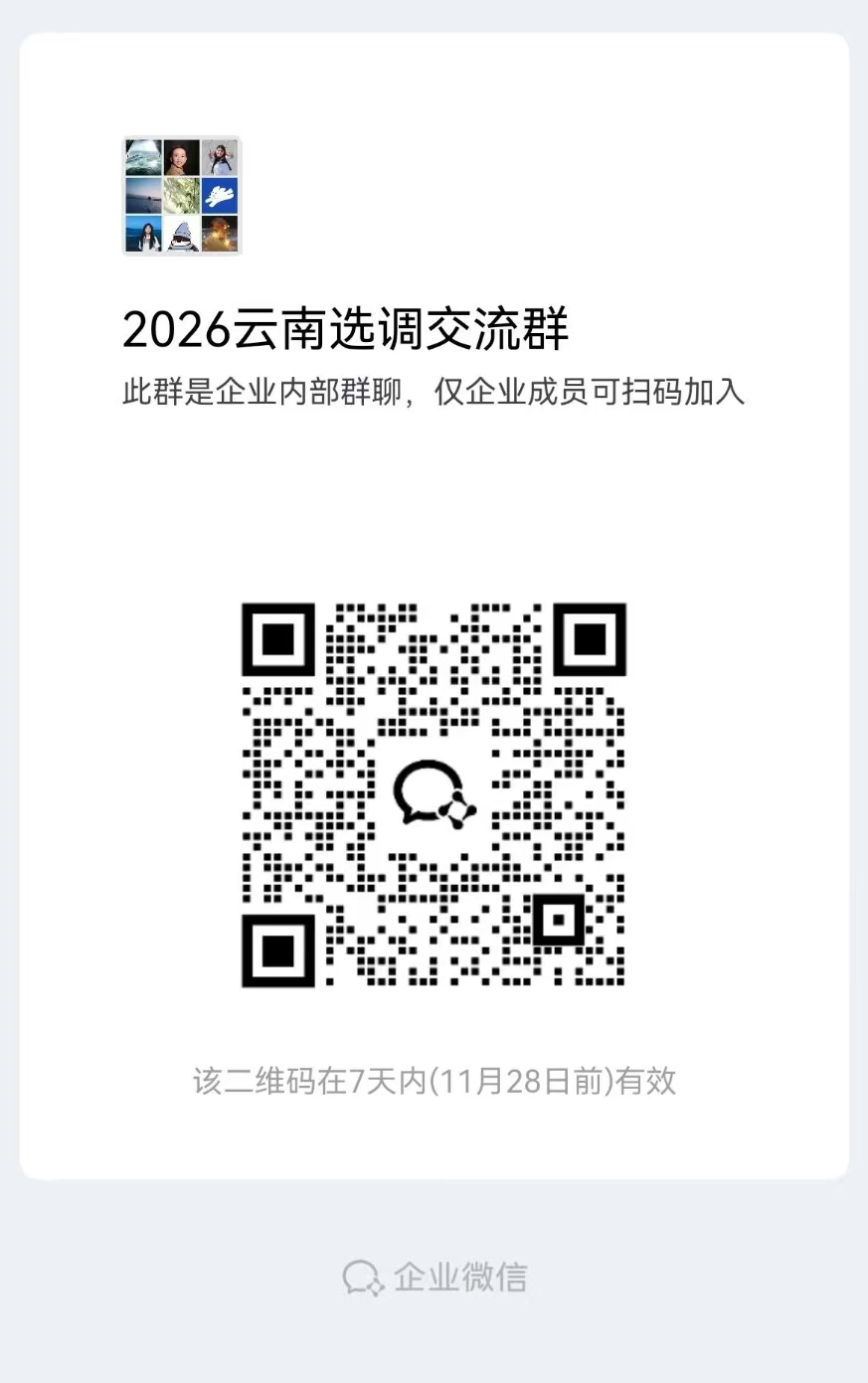 步骤1:扫描本公告的二维码,进入“2026云南选调交流群”。(如二维码失效,请添加工作人员微信:sxy18721301383,并备注“姓名-院系-云南选调”)