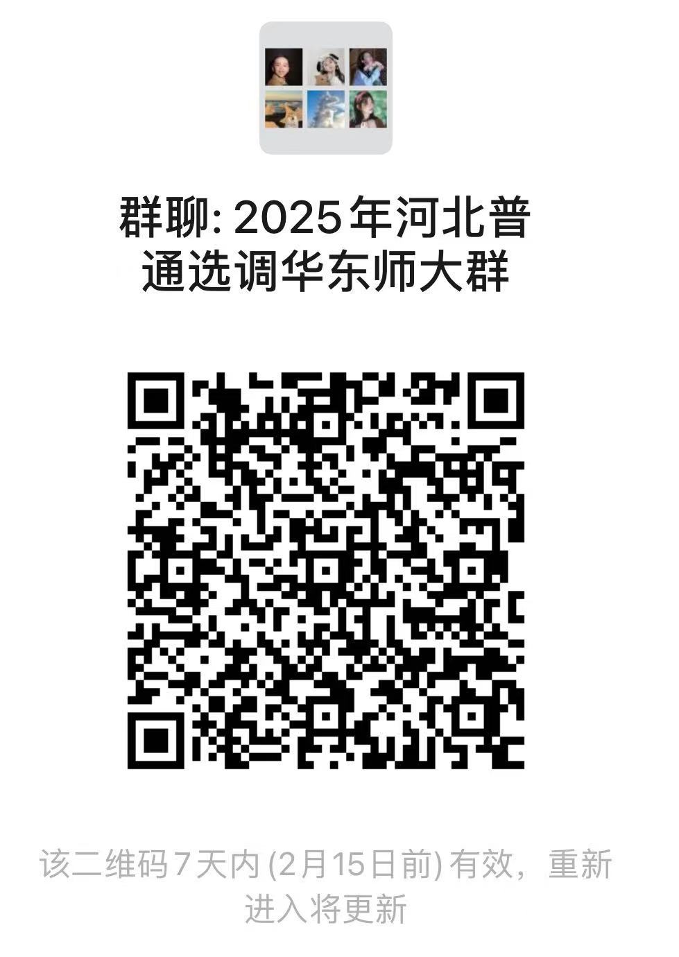 步骤1:扫描本公告的二维码,进入“2025年河北普通选调华东师大群”。(如二维码失效,请添加工作人员微信:Shenyizhen2,并备注“姓名-院系-河北普通选调”)