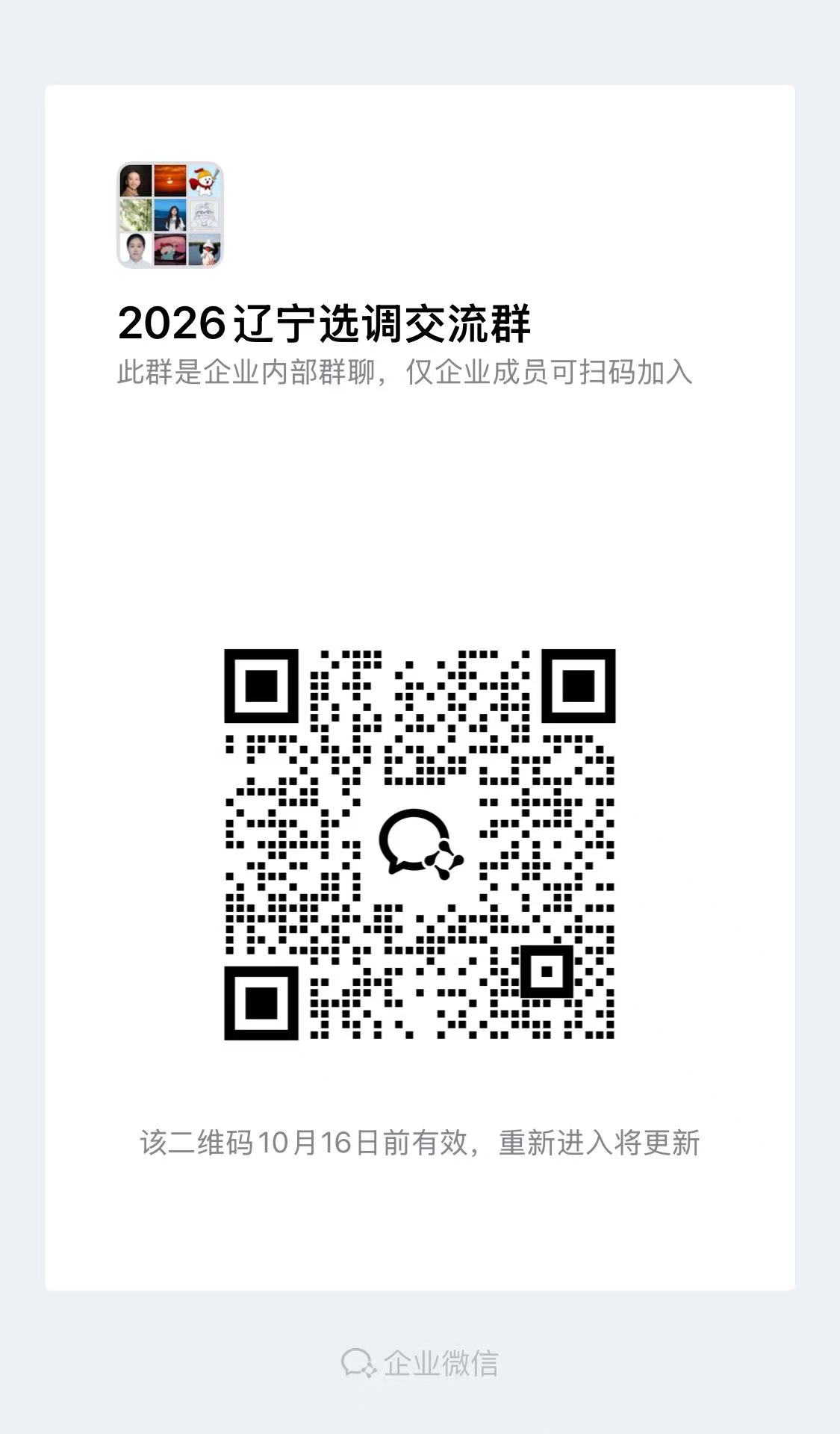 步骤1:扫描本公告的二维码,进入“2026辽宁选调交流群”。(若二维码失效,请添加工作人员微信18357430906,并备注“姓名-院系-学号-辽宁选调生”及时入群)。